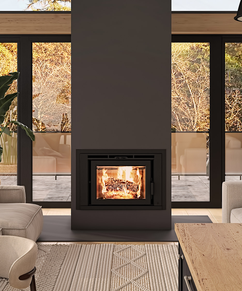 - Innovative perforated baffle offering an unimpeded view of the fire.